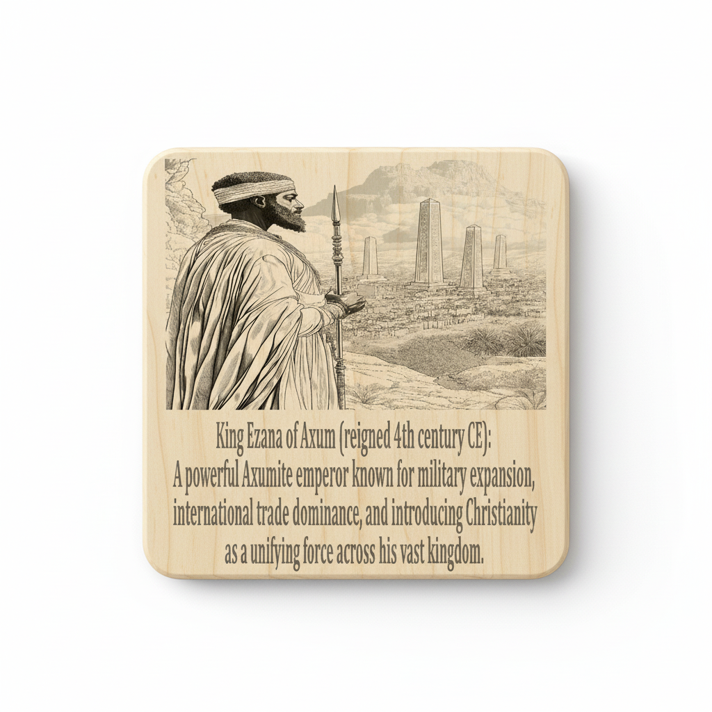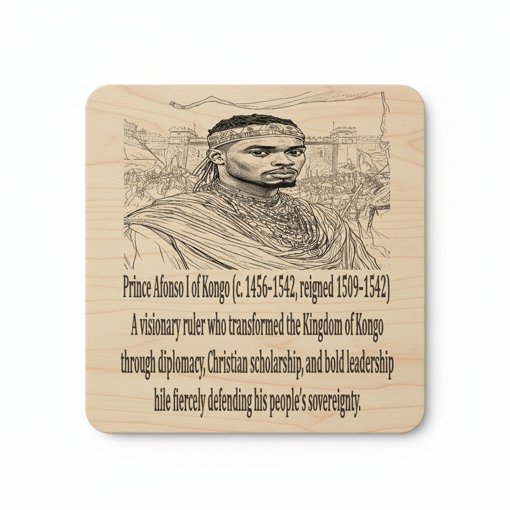 Celebrate African royalty and heritage with this engraved wooden coaster collection from Easton Engravings. Each set features detailed artwork of legendary kings, queens, princes, and princesses such as King Menelik II of Ethiopia, Queen Yaa Asantewaa of the Ashanti, Queen Tiye of Egypt, Princess Amanitore of Kush, Prince Oranmiyan of Ife and Benin, Prince Afonso I of Kongo, King Sonni Ali of Songhai, King Lalibela of Ethiopia, King Idris Alooma of Kanem-Bornu, Queen Ana Nzinga of Ndongo and Matamba, and more. Perfect for home decor, history lovers, educators, and meaningful gifting – because Every Piece Tells a Story.